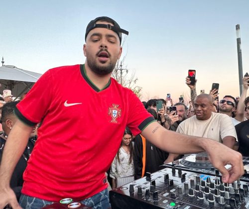 Pedro Sampaio está em Portugal para se apresentar no Rock in Rio Lisboa, no domingo (23). Para aquecer os fãs e conquistar o público português, o DJ e produtor brasileiro preparou uma surpresa nesta sexta (21) na capital do país. Com uma estrutura simples e uma mesa de som, ele levou um set de 40 minutos, de graça, ao Jardim Roque Gameiro, na região do Cais do Sodré, um ponto turístico da cidade às margens do rio Tejo.